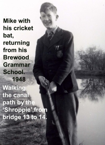Mike was born in Brewood in 1934 at 21 Bargate Street –The White House-(See above). He spent some of his early years in Africa because his father worked for the British Colonies as a veterinary surgeon and researcher into tsetse flies. Mike returned to England with his mother and sister at the outbreak of the Second World War, in the last convoy from Africa to England.