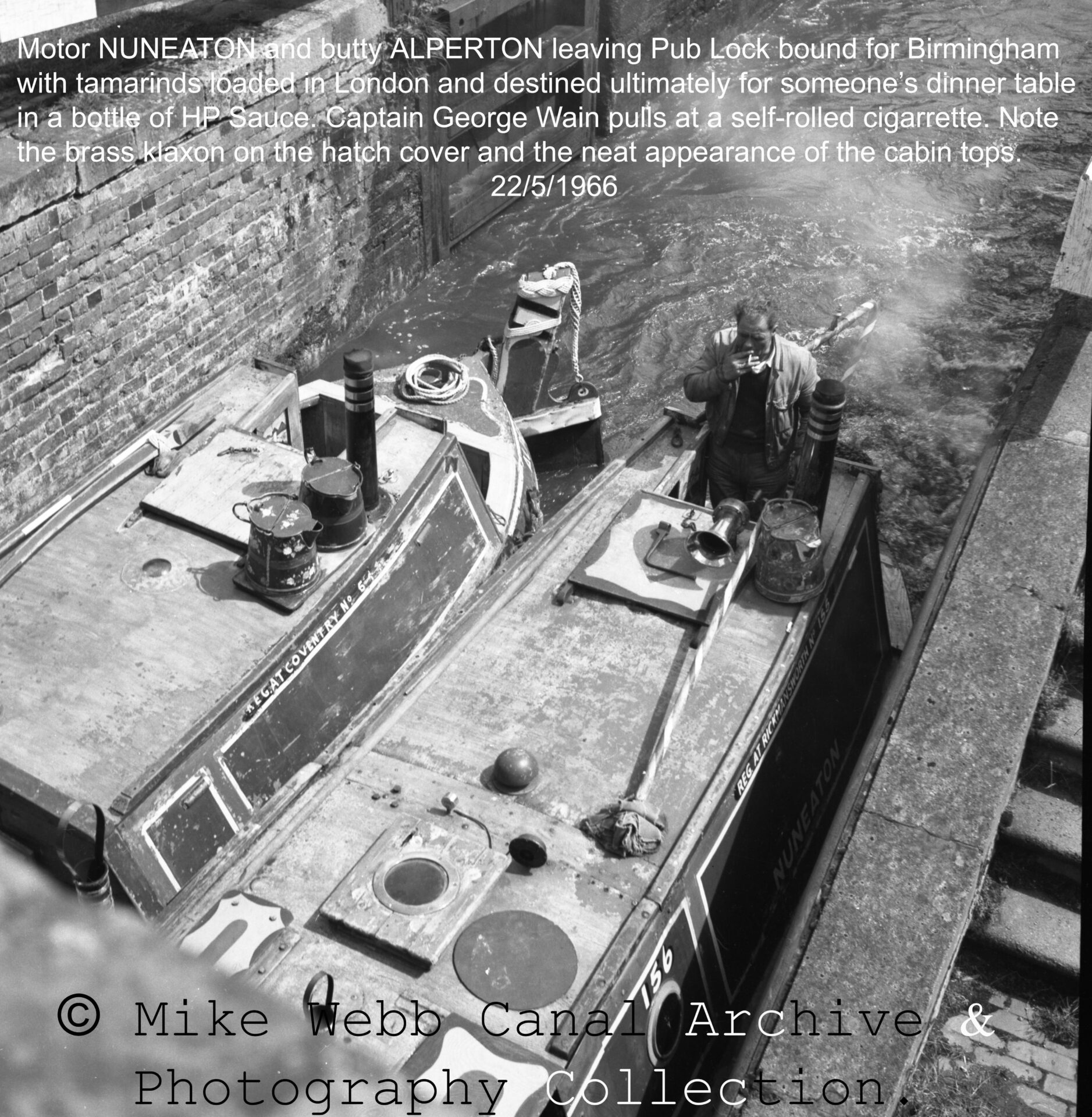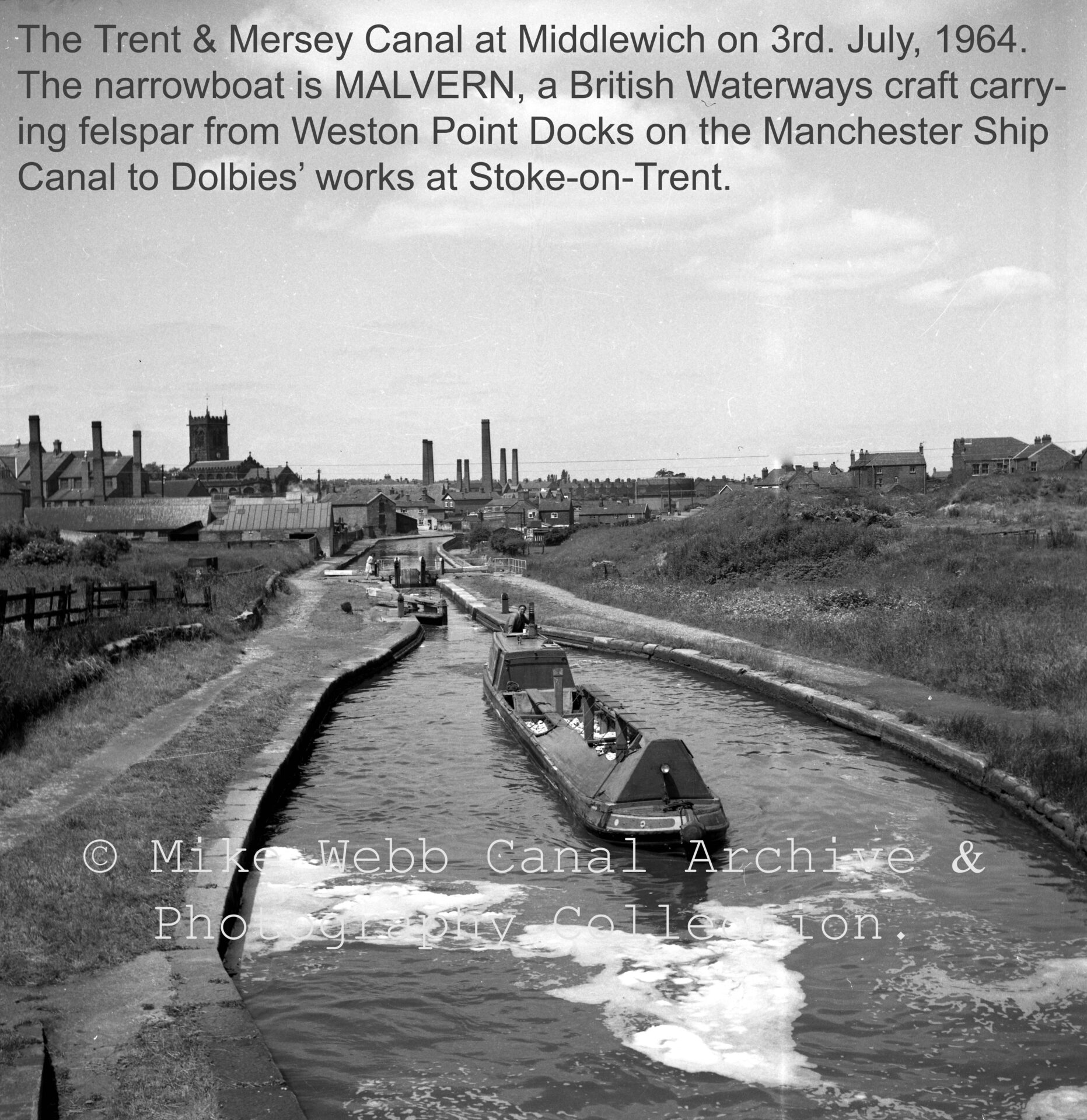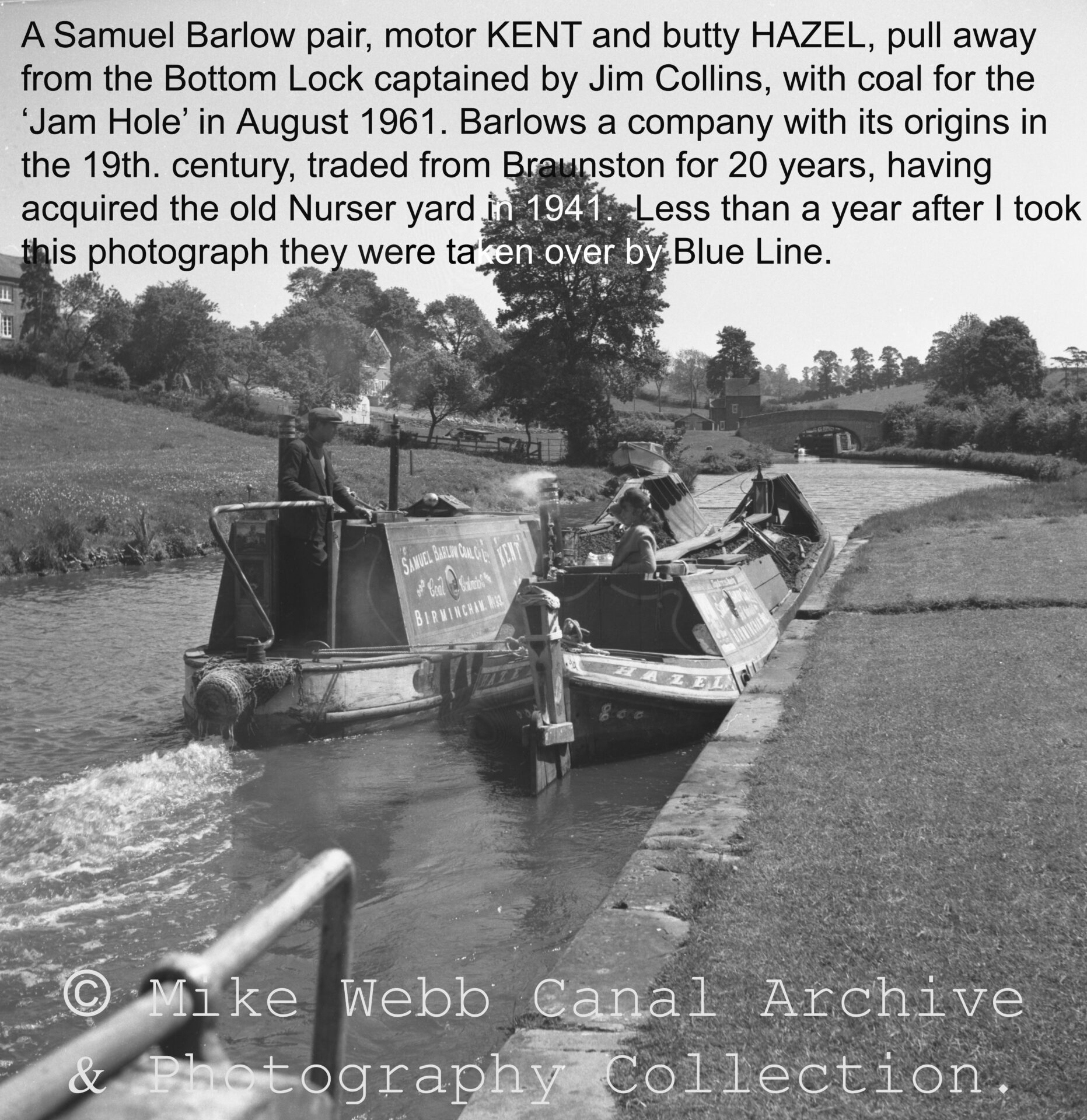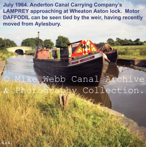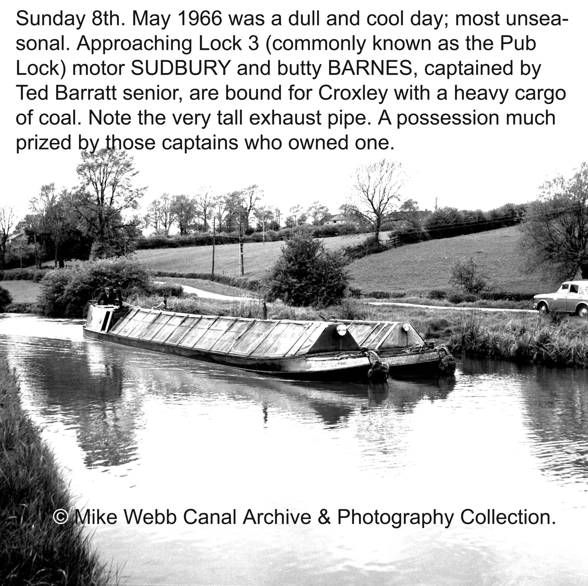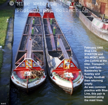 I acquired my first camera in 1958 and immediately began to take photographs of any working boat I was lucky enough to spot on the Shroppie. The next decade witnessed a rather rapid demise in commercial carrying along the Shropshire Union, although the remnants of the British Waterways Northwest fleet were firstly taken over by Willow Wren Canal Transport Services and latterly by the newly formed Anderton Canal Carrying Co. However, by the end of the Sixties, the canal had become increasingly the haunt of pleasure boaters. During this period one or two small outfits bravely carried out a rearguard action notably the Birmingham & Midland Canal Carrying Company and F.B. Lycett of Willenhall. The former Gas Street based organisation carried such commodities as aluminium (Walsall to Liverpool), pitch (Liverpool to Oldbury) and motor oil (Ellesmere Port to Aldridge on the BCN). The photogenic pair, BILSTER and ANGEL, of the Lycett company were often to be seen carrying aluminium from Weston Point Docks to Wolverhampton, sometimes carrying loads of up to 52 tons per pair under the shrewd captaincy of George ‘Jumbo’ Harris who is reputed to have worked for every canal carrying company since the last war!.