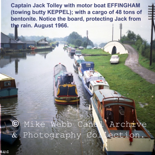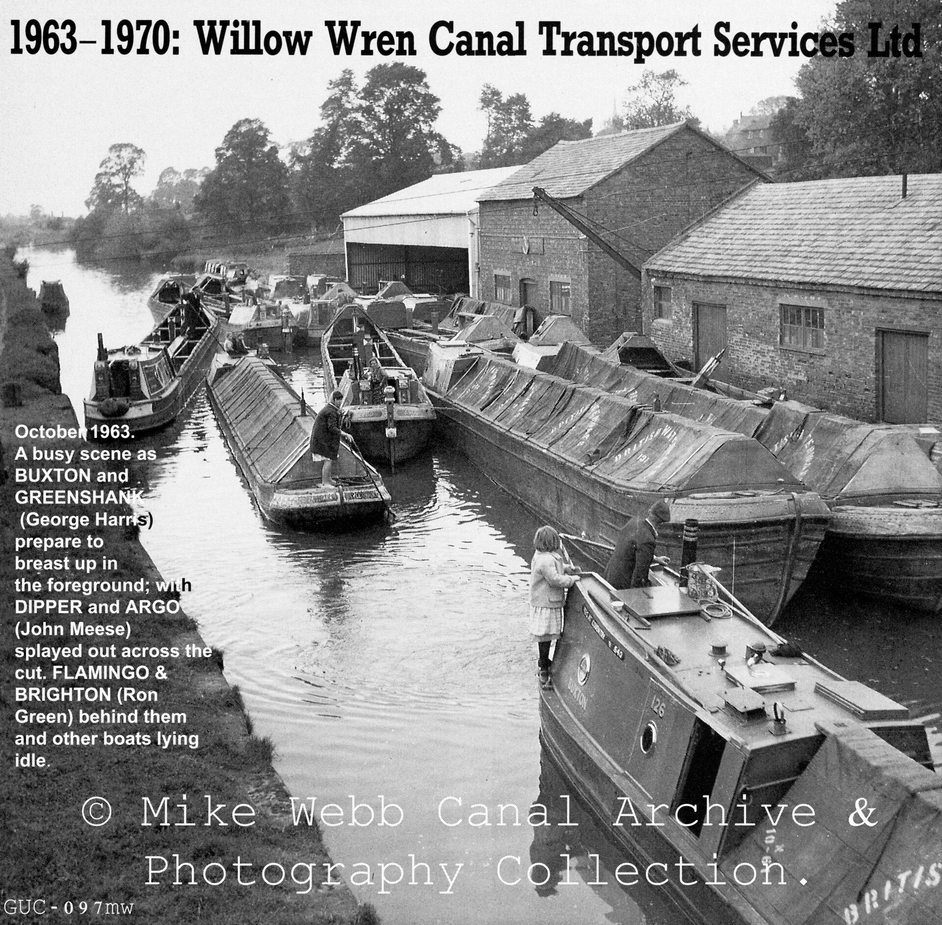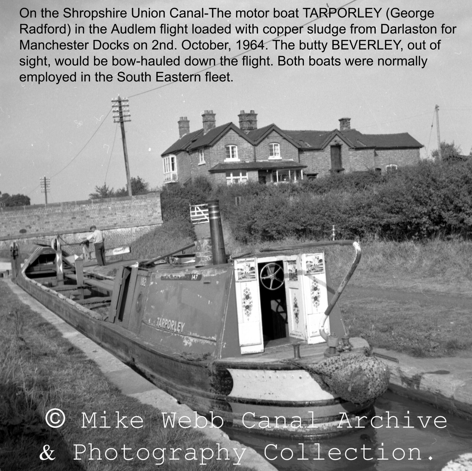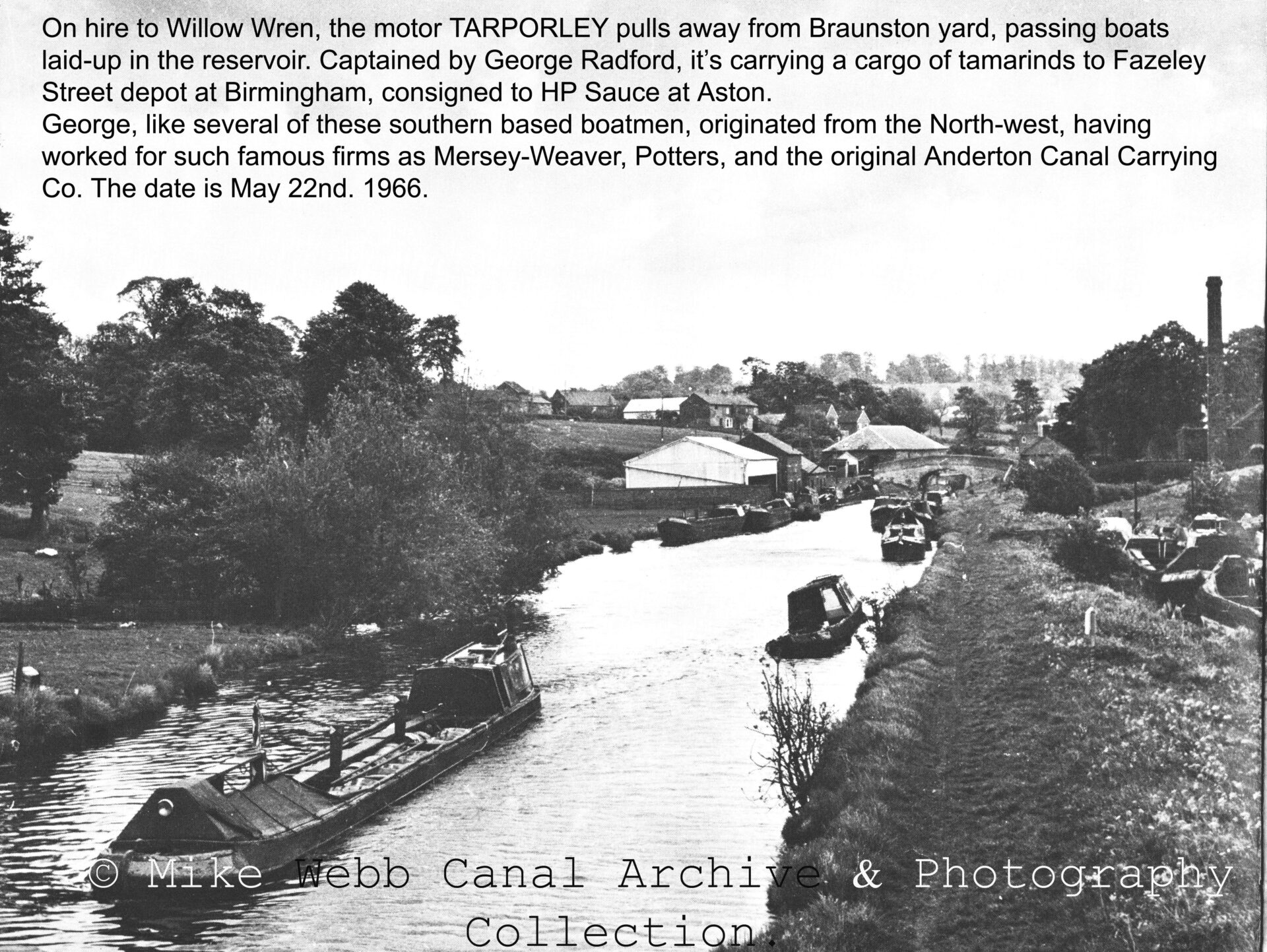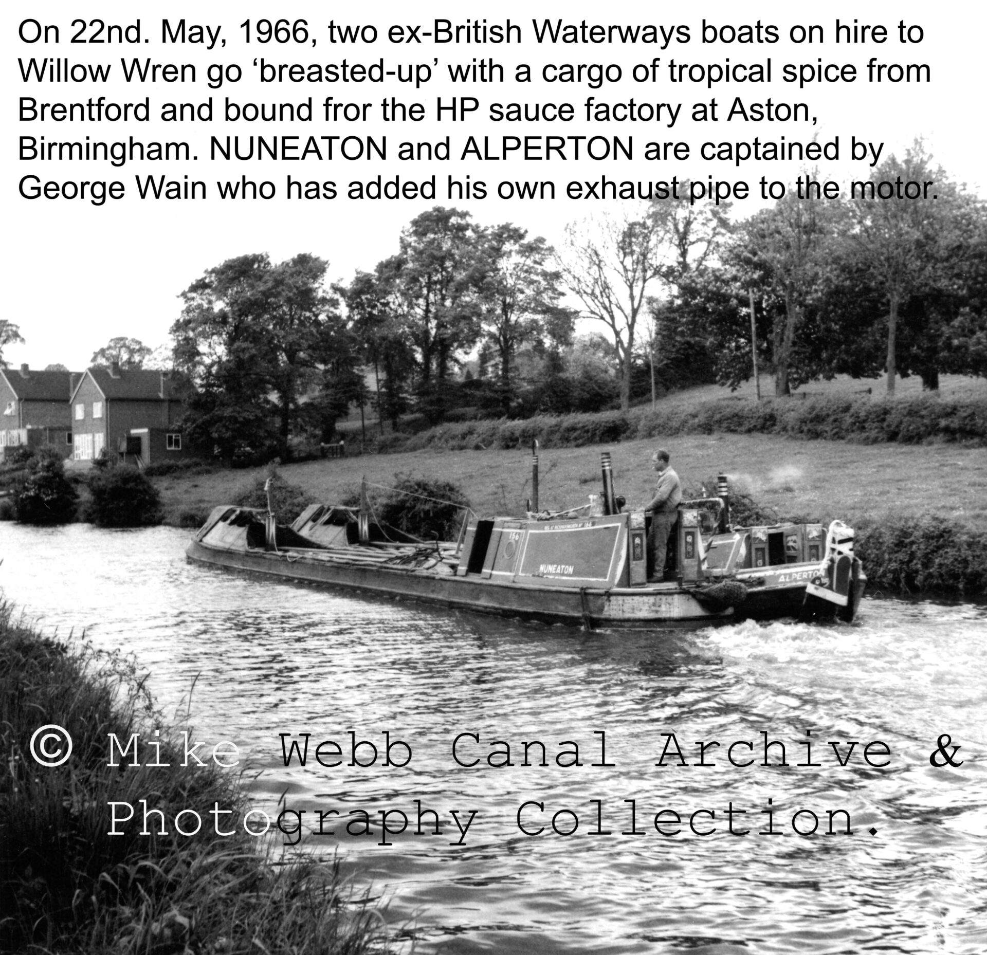 I acquired my first camera in 1958 and immediately began to take photographs of any working boat I was lucky enough to spot on the Shroppie. The next decade witnessed a rather rapid demise in commercial carrying along the Shropshire Union, although the remnants of the British Waterways Northwest fleet were firstly taken over by Willow Wren Canal Transport Services and latterly by the newly formed Anderton Canal Carrying Co. However, by the end of the Sixties, the canal had become increasingly the haunt of pleasure boaters. During this period one or two small outfits bravely carried out a rearguard action notably the Birmingham & Midland Canal Carrying Company and F.B. Lycett of Willenhall. The former Gas Street based organisation carried such commodities as aluminium (Walsall to Liverpool), pitch (Liverpool to Oldbury) and motor oil (Ellesmere Port to Aldridge on the BCN). The photogenic pair, BILSTER and ANGEL, of the Lycett company were often to be seen carrying aluminium from Weston Point Docks to Wolverhampton, sometimes carrying loads of up to 52 tons per pair under the shrewd captaincy of George ‘Jumbo’ Harris who is reputed to have worked for every canal carrying company since the last war!.