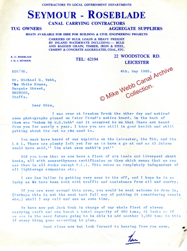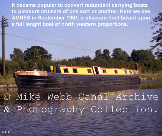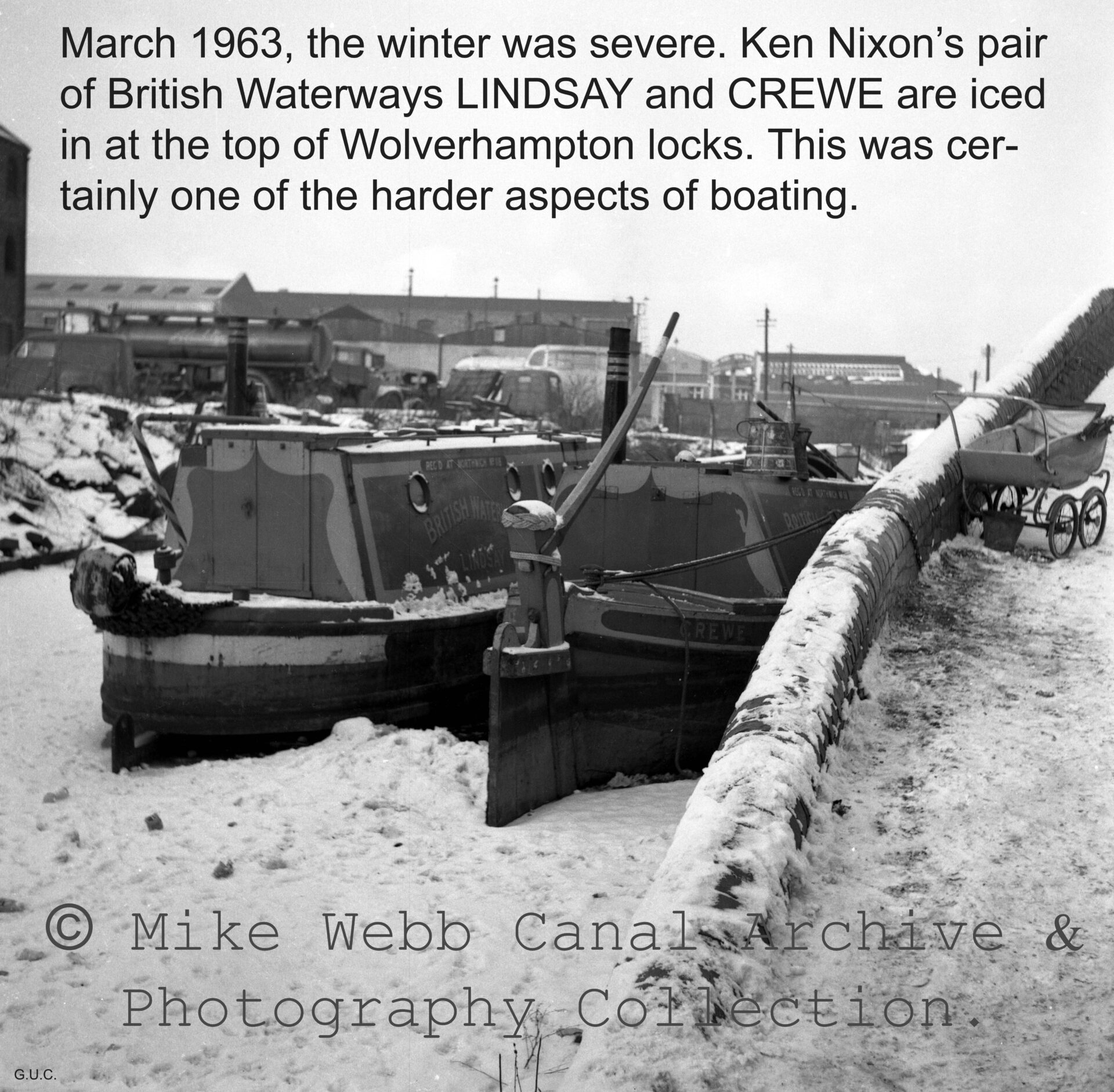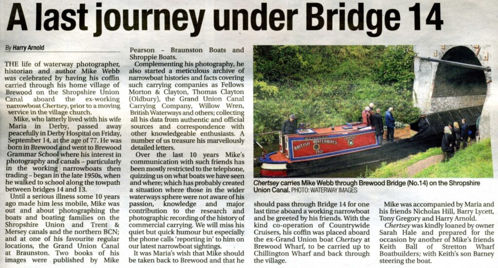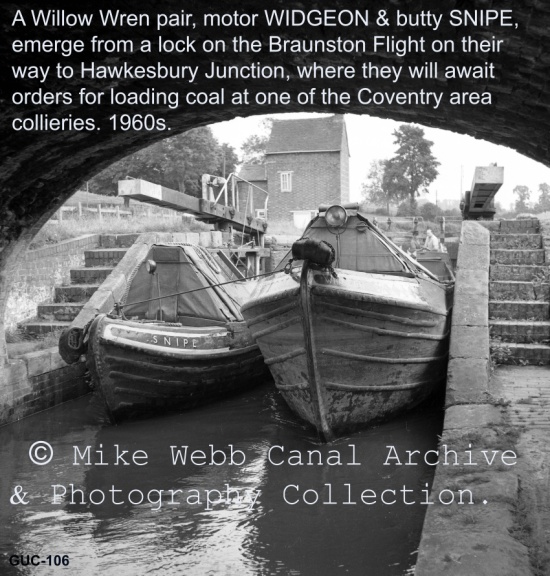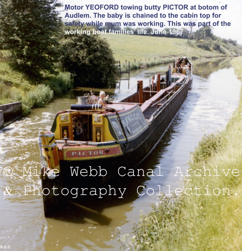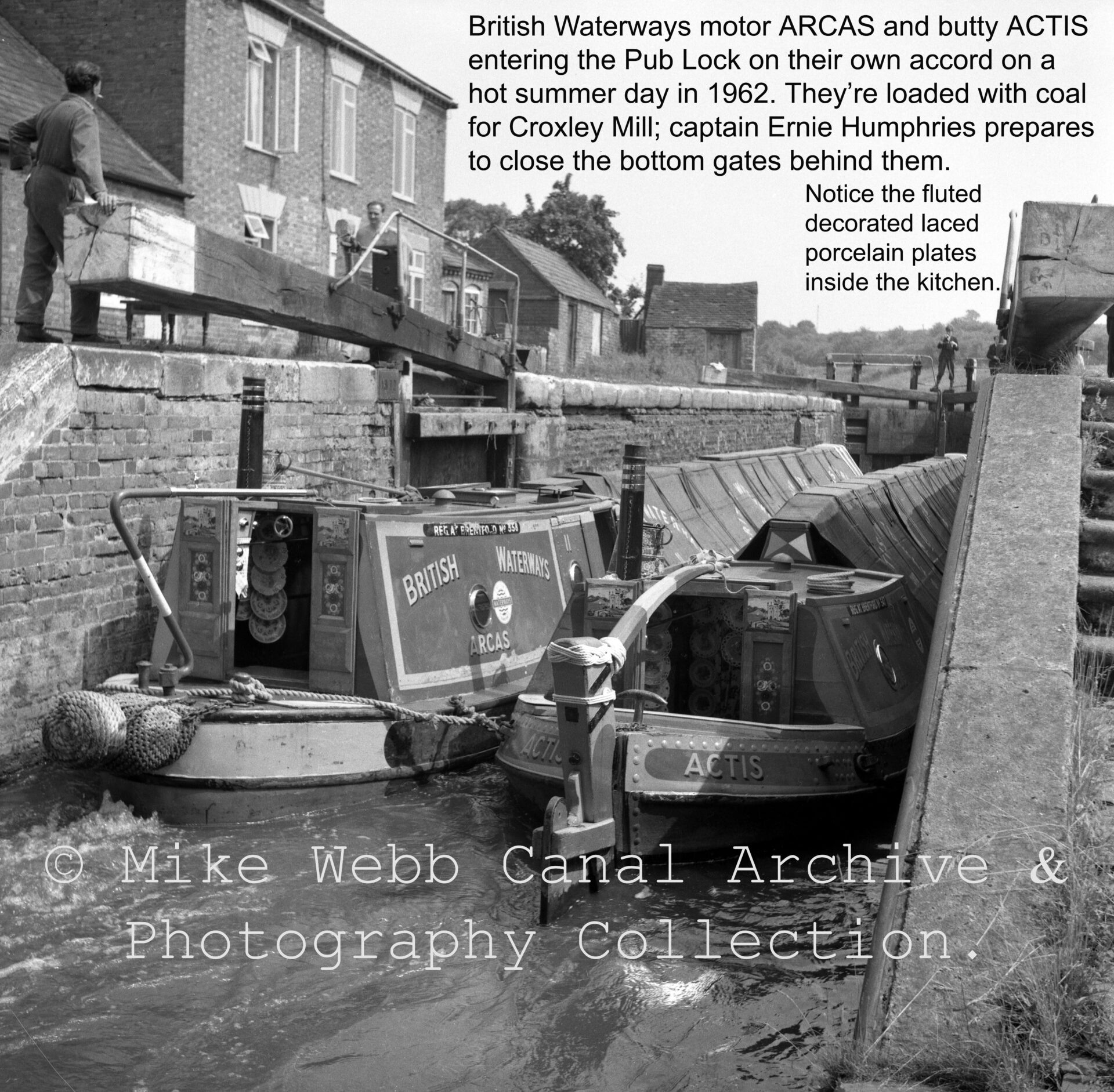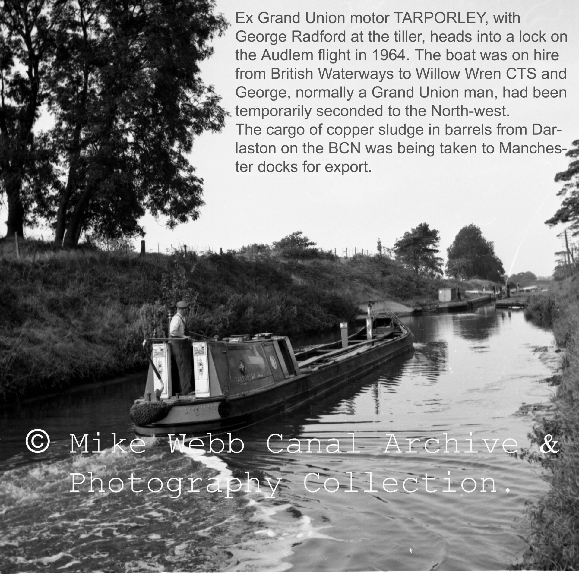 I acquired my first camera in 1958 and immediately began to take photographs of any working boat I was lucky enough to spot on the Shroppie. The next decade witnessed a rather rapid demise in commercial carrying along the Shropshire Union, although the remnants of the British Waterways Northwest fleet were firstly taken over by Willow Wren Canal Transport Services and latterly by the newly formed Anderton Canal Carrying Co. However, by the end of the Sixties, the canal had become increasingly the haunt of pleasure boaters. During this period one or two small outfits bravely carried out a rearguard action notably the Birmingham & Midland Canal Carrying Company and F.B. Lycett of Willenhall. The former Gas Street based organisation carried such commodities as aluminium (Walsall to Liverpool), pitch (Liverpool to Oldbury) and motor oil (Ellesmere Port to Aldridge on the BCN). The photogenic pair, BILSTER and ANGEL, of the Lycett company were often to be seen carrying aluminium from Weston Point Docks to Wolverhampton, sometimes carrying loads of up to 52 tons per pair under the shrewd captaincy of George ‘Jumbo’ Harris who is reputed to have worked for every canal carrying company since the last war!.