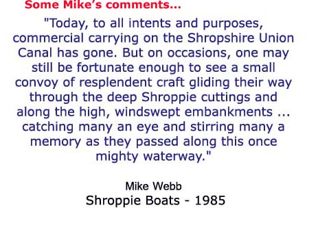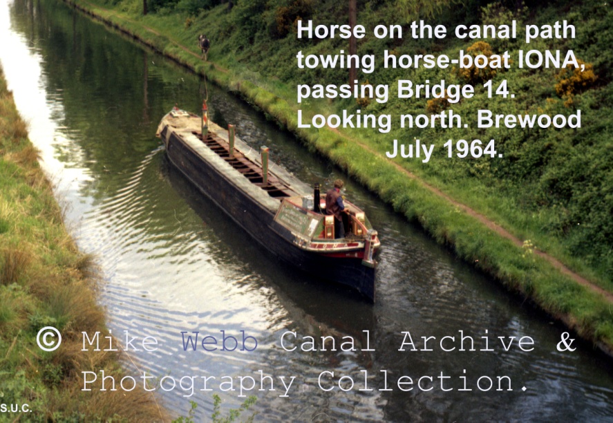 OLE & POYLE, CLENT & TENCH, STOUR & STARLING – such are the names which to me, personify the ‘Shroppie’ of twenty or thirty years ago. These, and other simple yet magical appellations were my baptismal names of ”Shroppie Boats”. Born within earshot of the Shropshire Canal at Brewood, 8 miles north of Wolverhampton, and spending my childhood in that sleepy village, it was easy to become addicted to the busy waterway. The canal linked the industrial Midlands with the North-western ports and, in those early post war years, traffic was of a frequency to compare with the comings and goings of pleasure craft today. Inhabitants of Brewood were accustomed to the sounds of the canal going about its workday business: from the heavy resonance of the slow revving 15hp Bolinder to the more urgent, higher pitched 9hp version; the sharp rifle-like cracking of the long whips favoured by the captains of Clayton’s horse boats; the rhythm of steel-clad clogs on the pavement as a boatman or his wife made their way into the village to shop or bus into Wolverhampton.