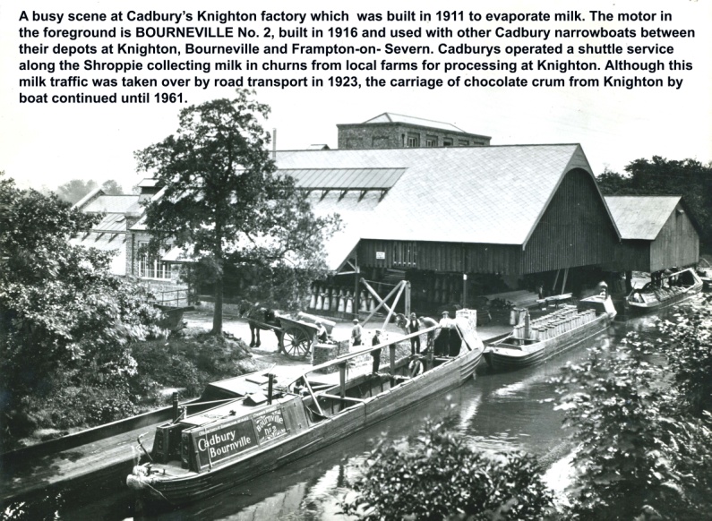 Ernest Thomas of Walsall and George & Matthews of Wolverhampton were two more regular users of the Shroppie. They delivered coal from the collieries of Cannock Chase to Cadbury’s at Knighton, who had a modern milk processing factory somewhat at odds with the rolling farmland of Staffordshire and Shropshire border. Additionally, it was not unusual to see boats from the London based Grand Union Canal Carrying Co and the Severn & Canal Co carrying cargoes along the Shropshire Union on sub-contract to Fellows, Morton & Clayton, at times when the latter needed extra boats to cope with a particularly large consignment.