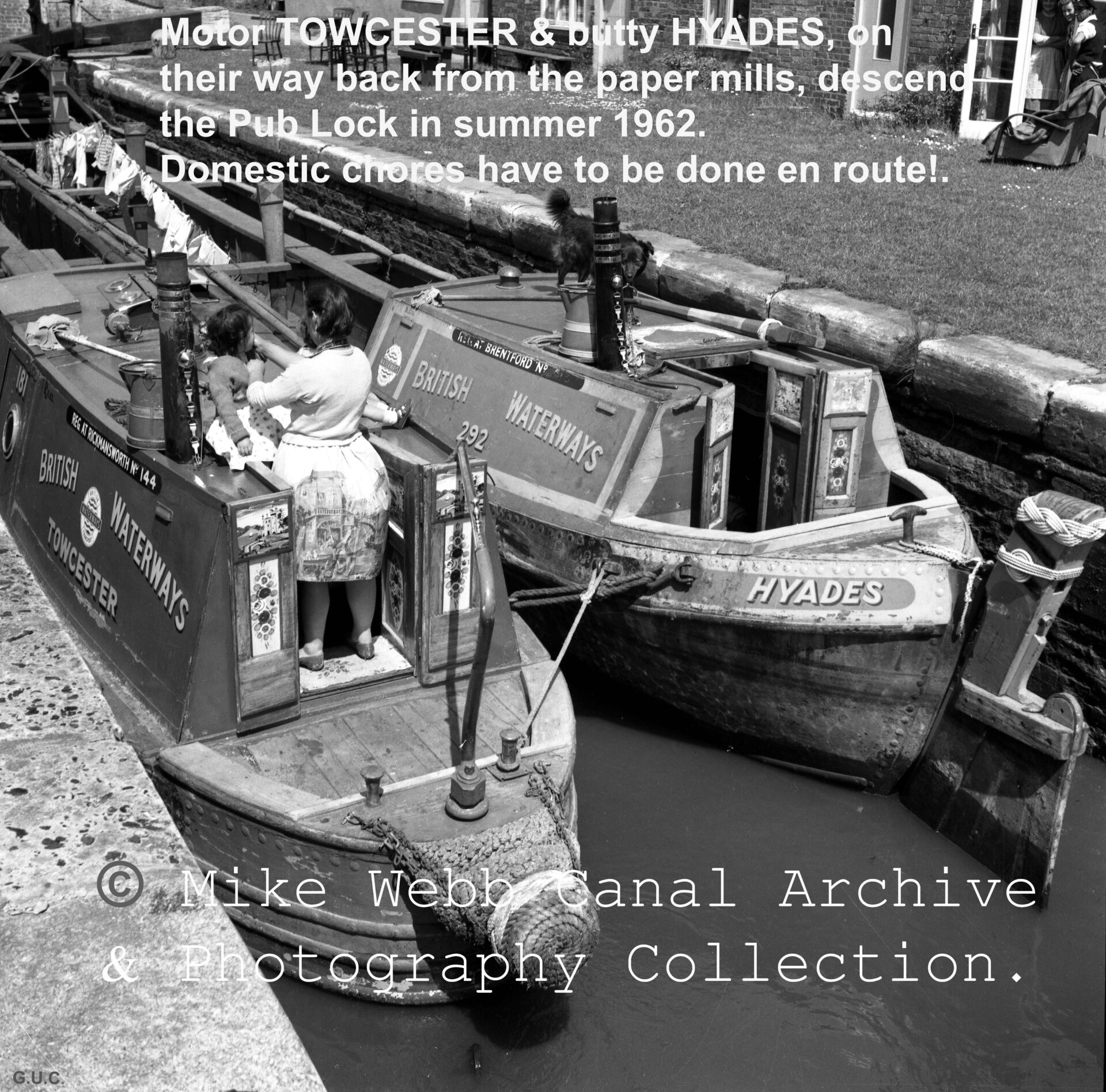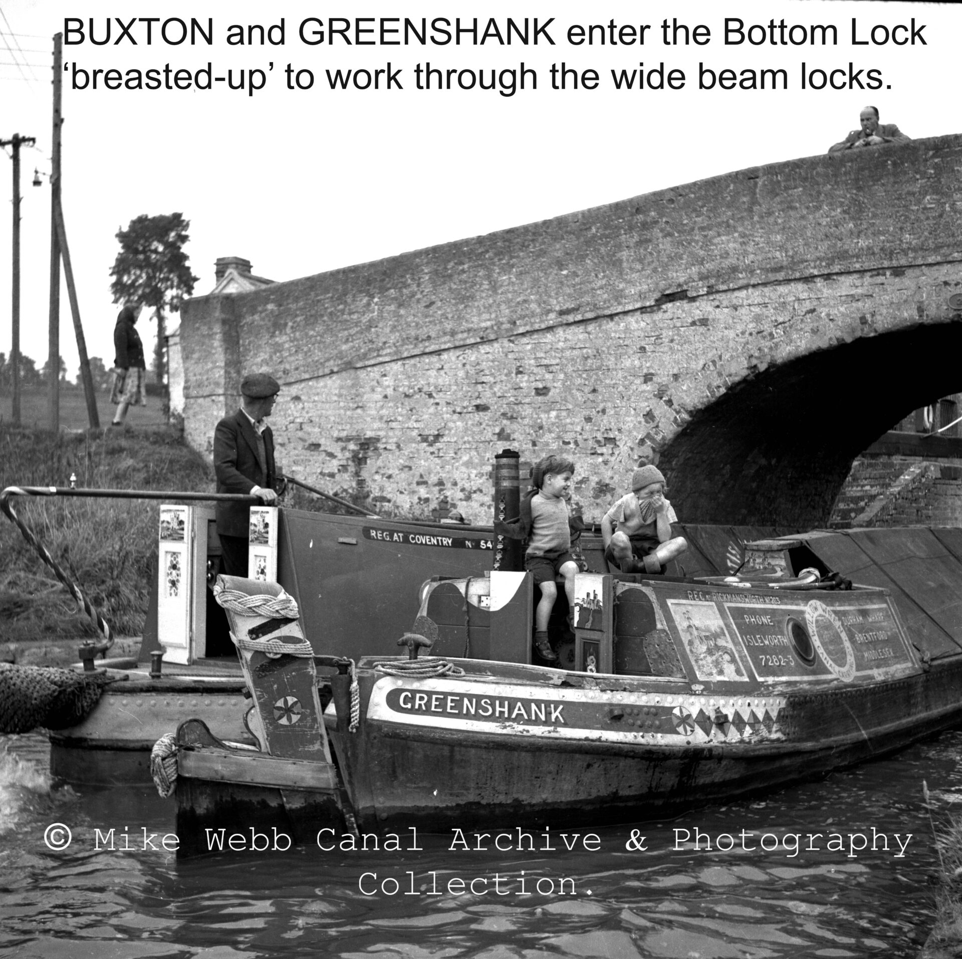 In time I ventured further along the canal. At various lock flights I entered into conversation with the boat people and became fascinated by their boat handling techniques. By now, FMC had been absorbed into the nationalised British Waterways, and one watched sadly as the distinctive red, green and white livery became swamped by the austere yellow and blue of the new nationalised undertaking. However, the tanker boats of Thomas Clayton remained firmly in the realms of private enterprise and, although tonnage began to drop, up to eight pairs were still regularly employed on the run until the contract ceased in the autumn of 1955. Moreover, it was not until 1953 that the final horsedrawn boats disappeared – OKA and KAMA, crewed by the indomitable Steve Dulson and family.